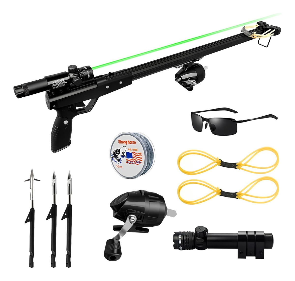 ARPÓN DE PESCA DEPORTIVA CON CARRETE MIRA LASER Y FLECHAS – KIT COMPLETO
