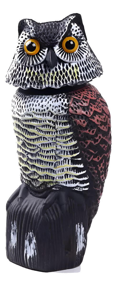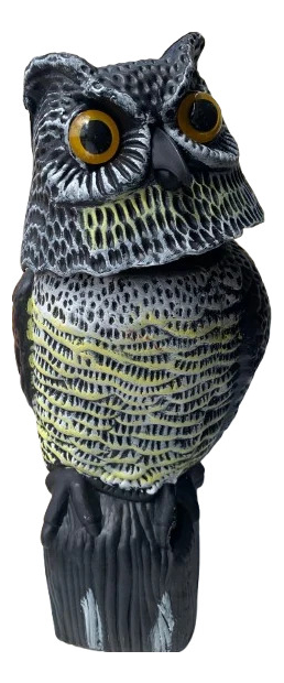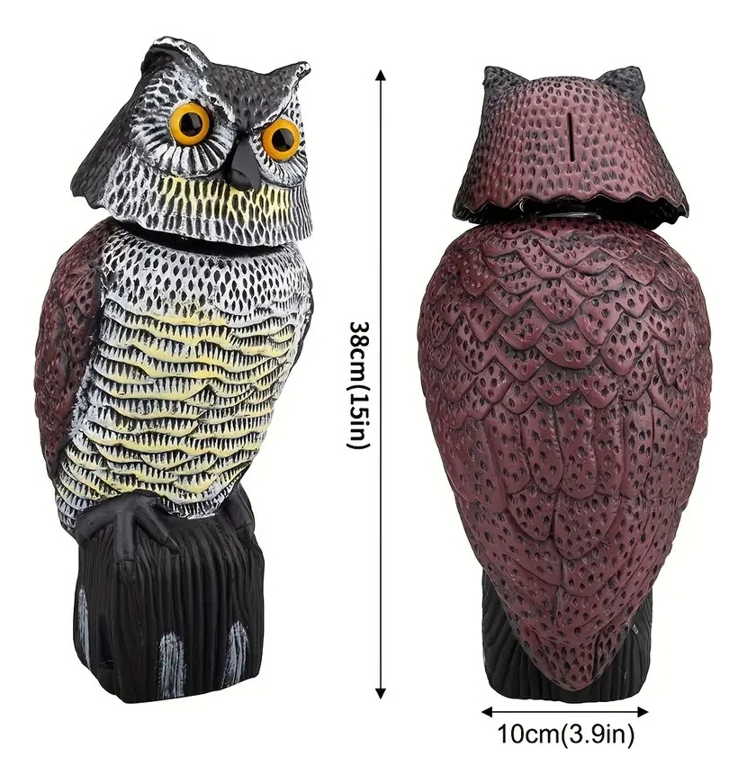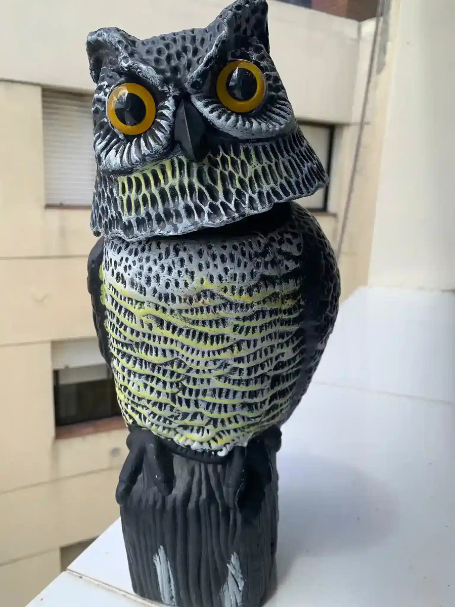 Búho ahuyenta palomas y pájaros eólico, con cabeza que se mueve con el viento. Especial espantar aves de balcones, huertos, jardines y patios. Totalmente ecológico y realista.