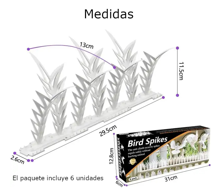 Evitá suciedad y nidos con púas de polipropileno resistentes al clima. Son fáciles de instalar, ecológicas y tienen un diseño discreto y estético que se integra bien en cualquier espacio.